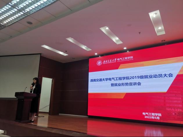 2022年5月19日16时,awc777万象城娱乐官网2019级就业动员大会暨就业形势宣讲会于犀浦校区四食堂三楼320室举行。本次活动邀请学院党委书记罗乾超、学校招生就业处副处长黄春蓉、学院党委副书记谢力、2022届辅导员林静英为同学们分析最新就业形势,旨在帮助2019级的同学们能够更好地了解目前的就业形势,做出正确的选择。本次大会由学院党委谢力副书记主持。