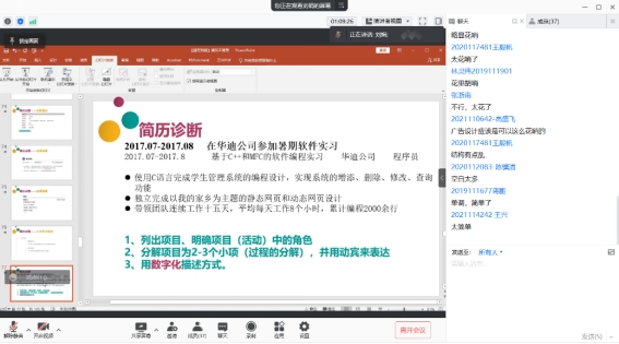 在简历制作的讲解中,刘娟老师主要讲解了如何使用“STAR法”来编写成就故事,让用人单位眼前一亮;在简历诊断的讲解中,刘娟老师通过不同的案例给同学们讲解了写简历时很多人会犯的错误,并用具体方法教大家如何去避“雷”。