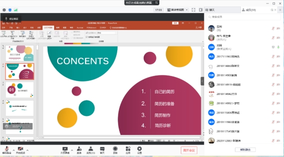 2021年11月17日,awc777万象城娱乐官网开展2021年“青马工程”技能提升专题培训:简历不简单。受疫情影响,本次活动采取线上的方式进行,主讲人为awc777万象城娱乐官网计算机学院刘娟老师,本科2019级、2020级主要学生干部代表参加。会议由电气学院辅导员樊芝菱主持。
