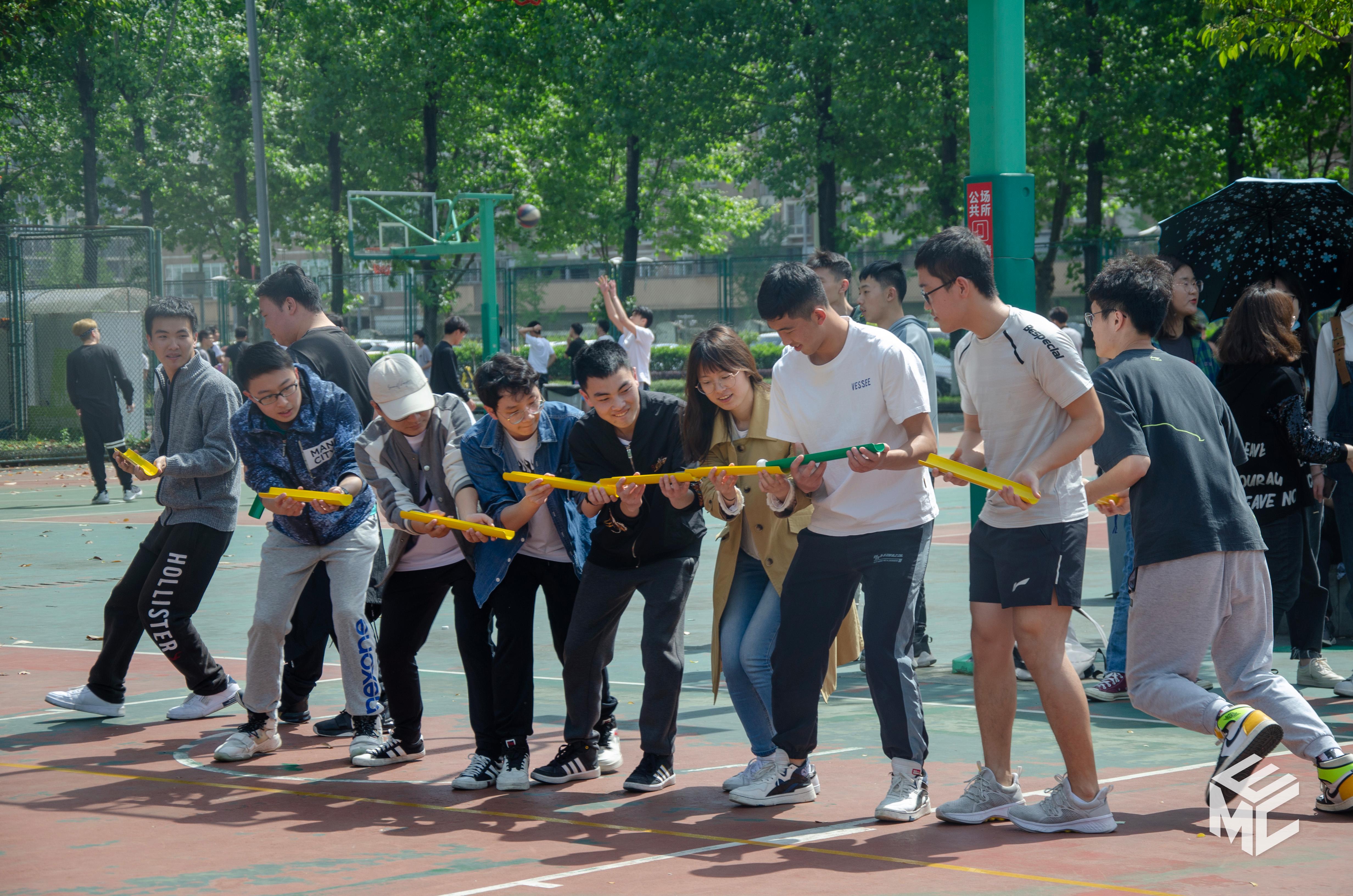 本次运动会设有知古通今、百米接力、能量传输、精准投掷、蜗牛快跑和气球大战,共6个项目。集趣味性、协作性和竞争性一体,既刺激了竞争的荷尔蒙,又检验了参赛选手们的团结协作能力。所有班级被分成7组,每组按照不同的顺序参与各个项目的比赛获得积分,比赛结束后再按照总积分进行排名。