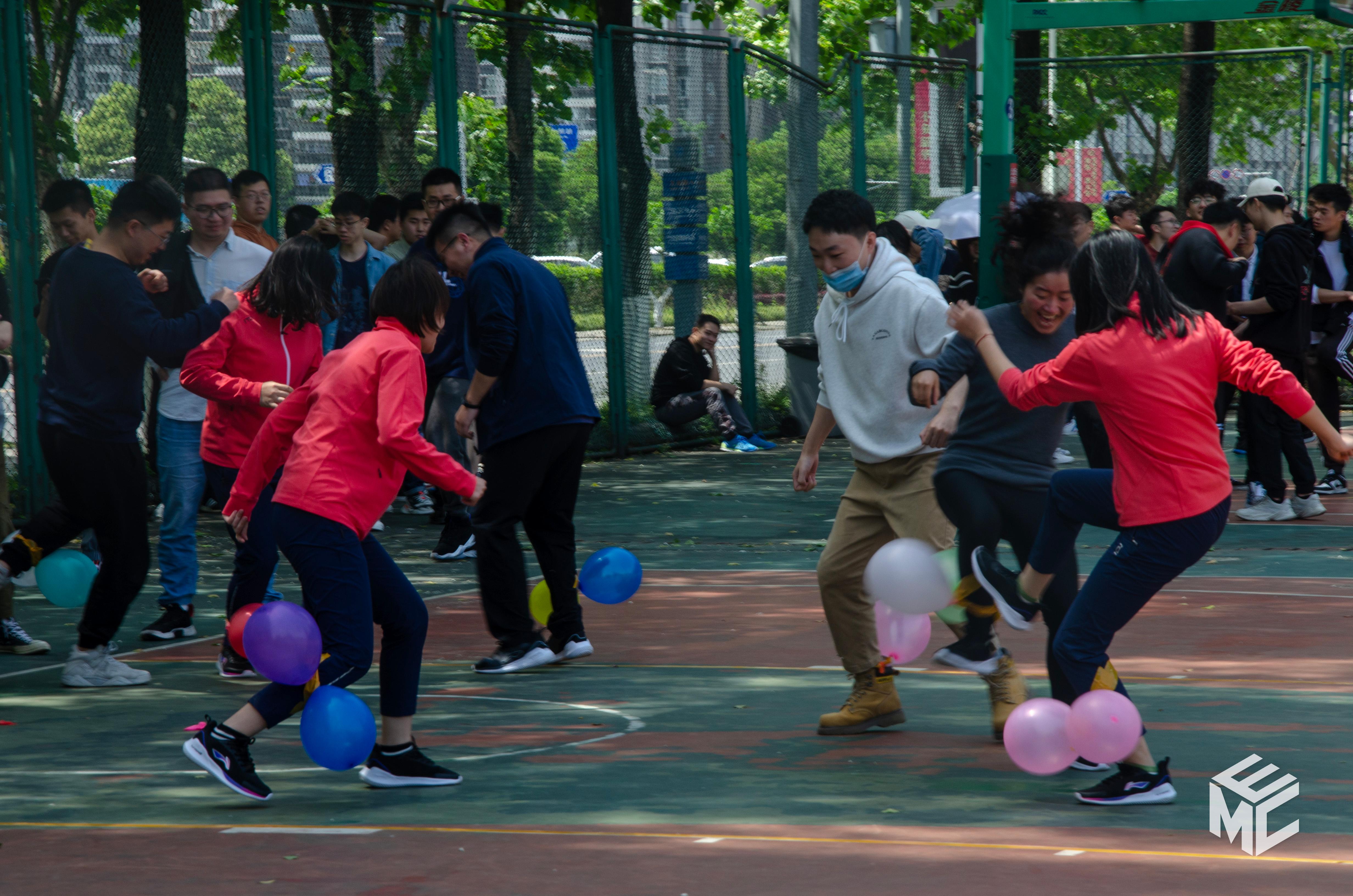 作为本次运动会最为有趣的项目,气球大战也倍受欢迎。选手们保护自己气球不被踩爆的同时去踩爆其他选手的气球。而不断响起的气球爆炸声让这个比赛场地充满了刺激与欢乐。