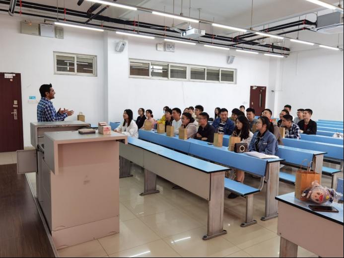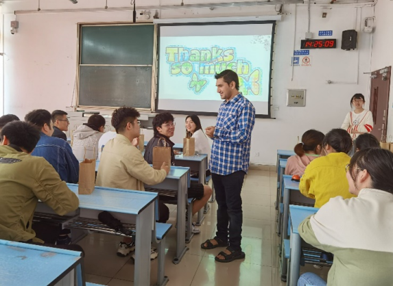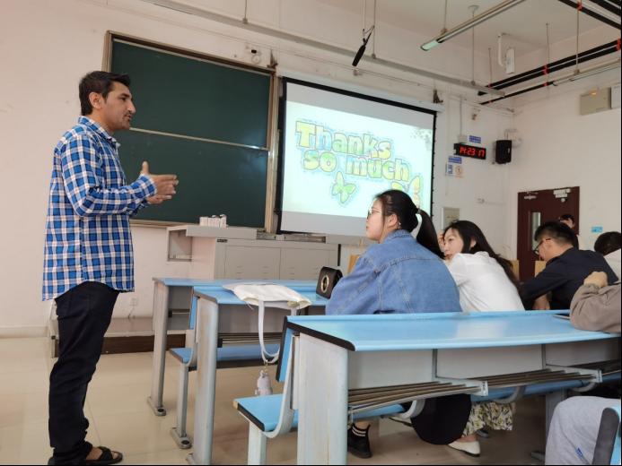 接下来的问答环节,吴雪莲、张曼、龚子和刘新月等同学积极提问。通过问答环节,Atazaz同学介绍了一些家乡的美食和风俗习惯,让同学们对巴基斯坦的文化有了更多的了解。此外,Atazaz同学还分享了自己留学生活中遇到的困难,以及解决的办法,表达了自己今后的职业规划。