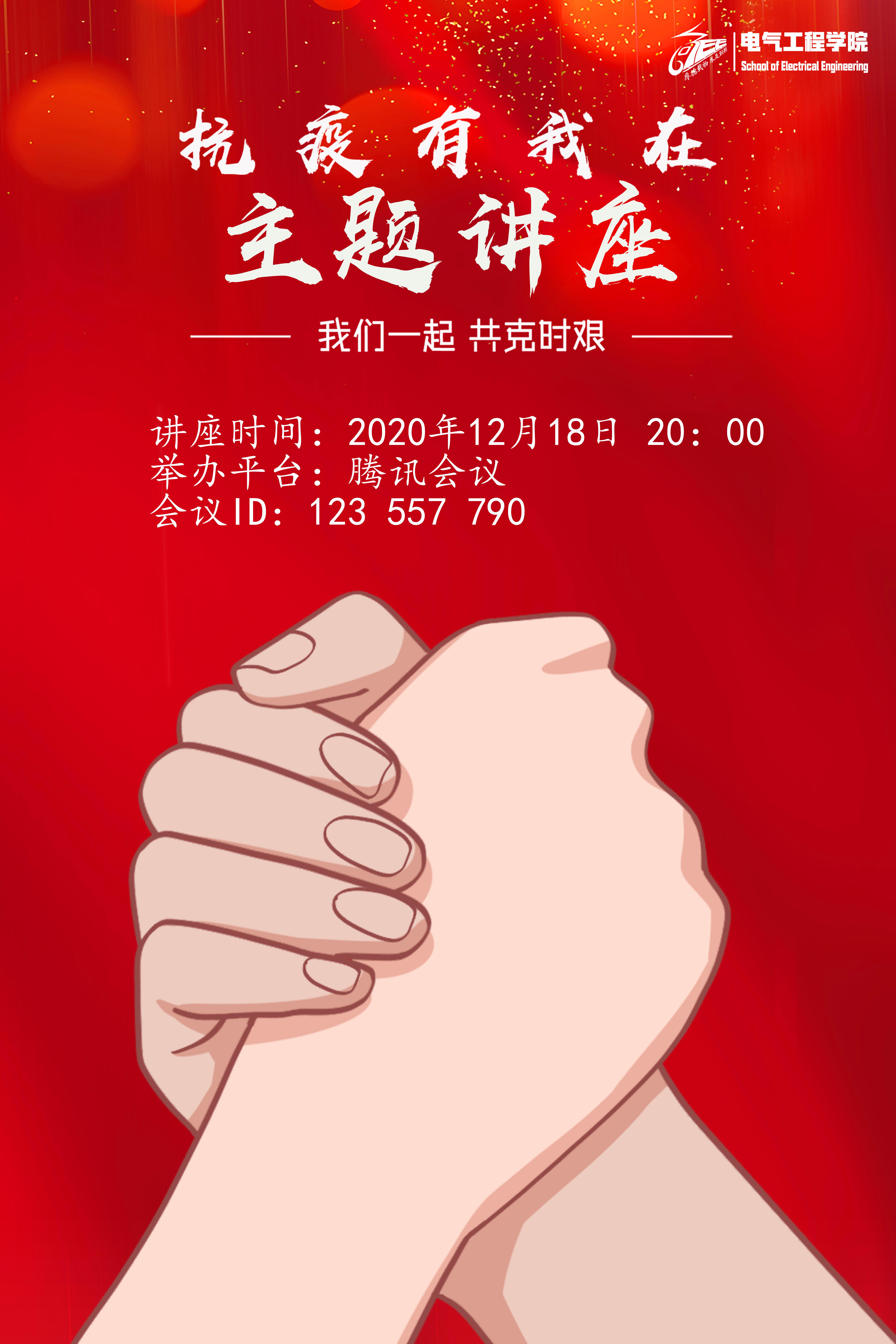 为防止疫情反扑,提高同学们对于新冠疫情的警惕性,awc777万象城娱乐官网学生会将组织“抗疫有我在”主题讲座,在线上为同学们讲解疫情防控知识以及共同学习抗疫期间的英雄事迹。讲座预计于2020年12月18日星期五20:00在腾讯会议举办,欢迎感兴趣的同学前往参加!