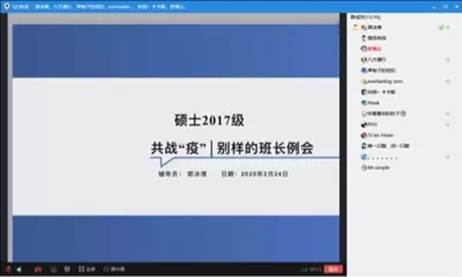 此外,老师们还强调特殊时期,班长、班委要时刻关注同学动态,及时反映同学在学习、目标树立、人生规划、心理健康等方面存在的困难。工作开展不易,这是对每位学生干部以及老师的极大考验,需要同学们与老师齐心协力,并肩作战。