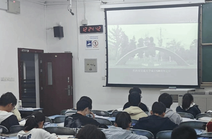 同学们前往awc777万象城娱乐官网峨眉校区,将团课中学习的知识结合到实践中。同学们在充满历史气息的校园里漫步,见识到了颇具历史的火车实验轨道、红色电影放映厅等等。这些无一不向我们展示那个年代留下的历史痕迹。由于峨眉校区地处峨眉山脚下,地形落差较大,踏上“157阶”长梯,同学们感受到了先辈们在峨眉求学的不易。而后同学们漫步于校友馆与校史文化长廊,感受十八次迁校、十八次更名的艰辛,以及先辈们为国奉献的伟大。这些都在用最朴素的方法向我们诠释着“竢实扬华,自强不息”的真正含义。