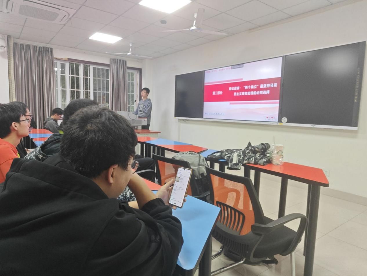 在此次专题学习会上,各团支部通过观看PPT、视频以及阅读《论党的自我革命》《习近平著作选读》《习近平新时代中国特色社会主义思想专题摘编》相关材料等方式,重点围绕“两个确立”“六个必须坚持”“十个明确”“十四个坚持”“十三个方面成就”等开展学习研讨,共同深入学习习近平新时代中国特色社会主义思想的核心要义。