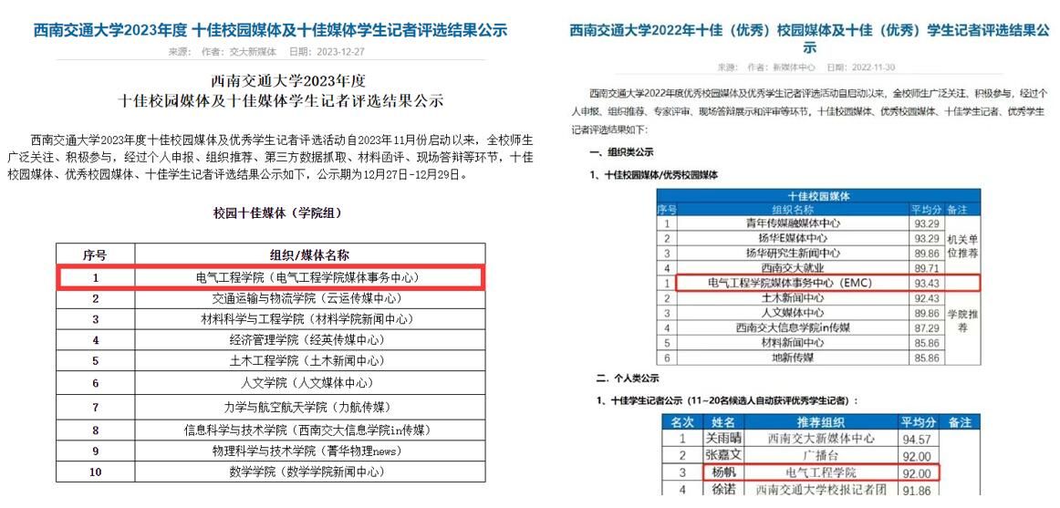 awc777万象城娱乐官网坚持落实“立德树人”根本任务,牢牢把握“围绕中心,服务大局”的宗旨,进一步加强学院新闻信息宣传工作的组织领导和有效管理。学院健全新闻宣传工作机制,培养了一批新闻宣传学生骨干,2004年成立《电气人》编辑部,2007年,编辑部正式更名为awc777万象城娱乐官网媒体事务中心(EMC),该组织多次获评awc777万象城娱乐官网“十佳校园媒体”,其中,2022年度、2023年度连续两年以全校第一的成绩获评“十佳”。