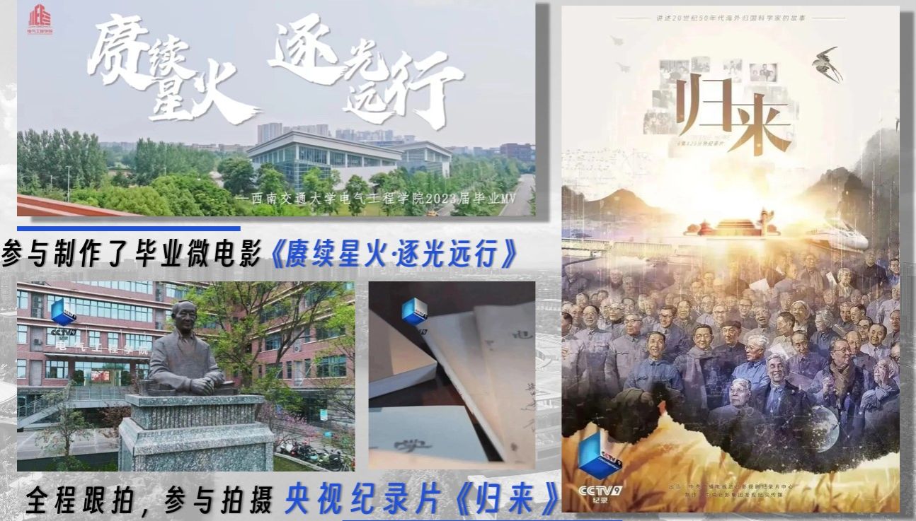 在踏踏实实做好内容的基础上,EMC坚持做有品质的校园媒体,将好声音、正能量传播出去。EMC连续多年承办摄影比赛,丰富文化建设,优秀作品斩获四川省第十届大学生艺术展演活动摄影类一等奖、二等奖各一项,以及第六届四川大学生网络文化节摄影比赛三等奖。持续运营2年“电气新青年”校园网络文化工作室,创作出一批互联网+新媒体的思政教育音视频作品:推出14期《电气传承》系列音频推送;创作微电影《追光》《求索》,激发同学们自主学习的热情,展现当代年轻人勇担时代之责而砥砺求索的精神。EMC还全程跟拍央视纪录片《归来》,采访学校多位老教授,翻阅珍贵历史资料,学习以曹建猷院士为代表的无数海外归来的科学家投身祖国建设,艰苦奋斗、锐意创新的精神品质,在全院范围内掀起传承先辈精神、弘扬电气文化的热潮。