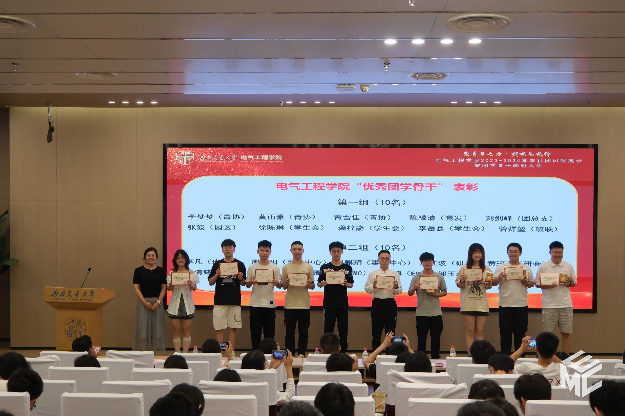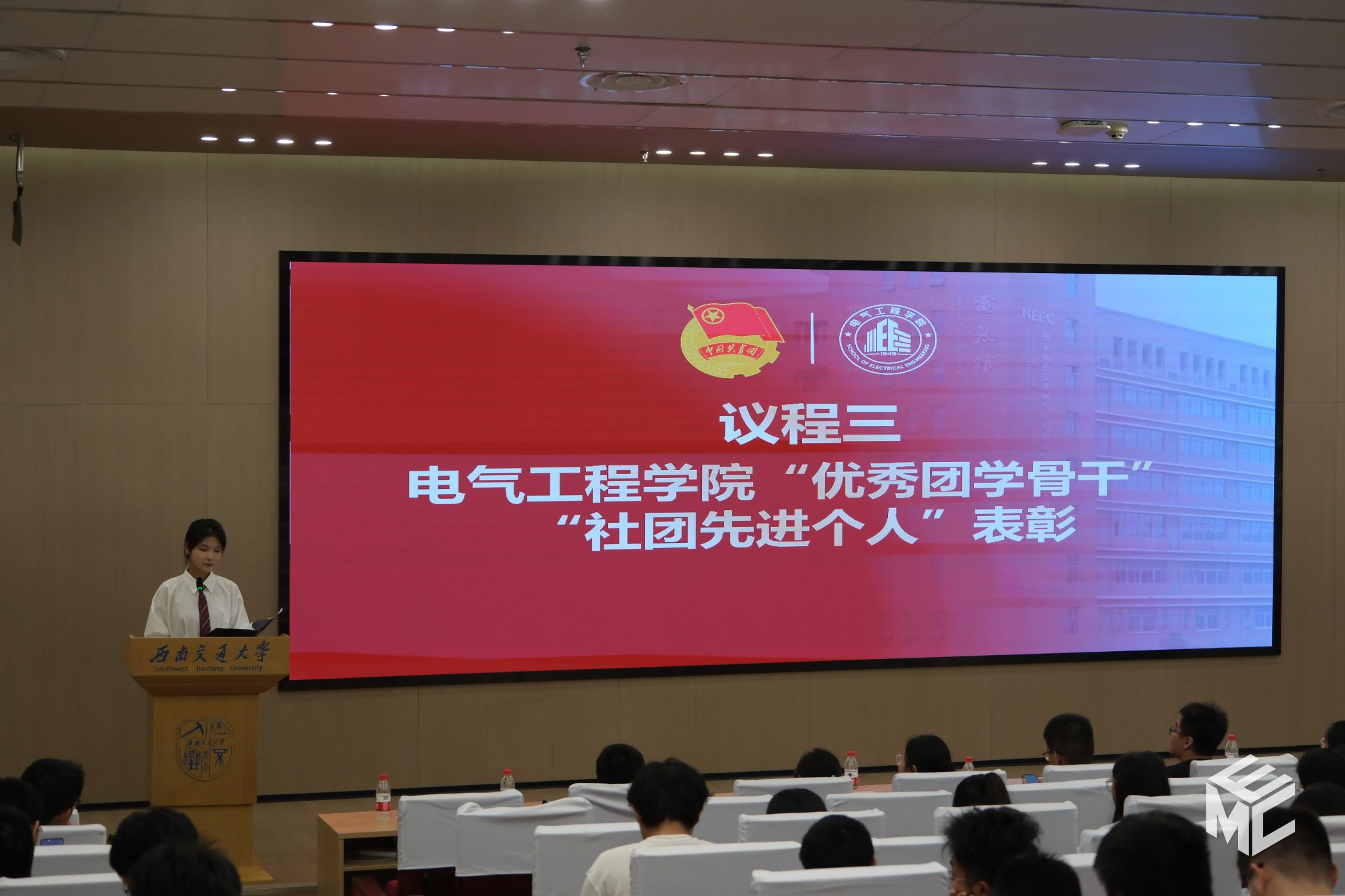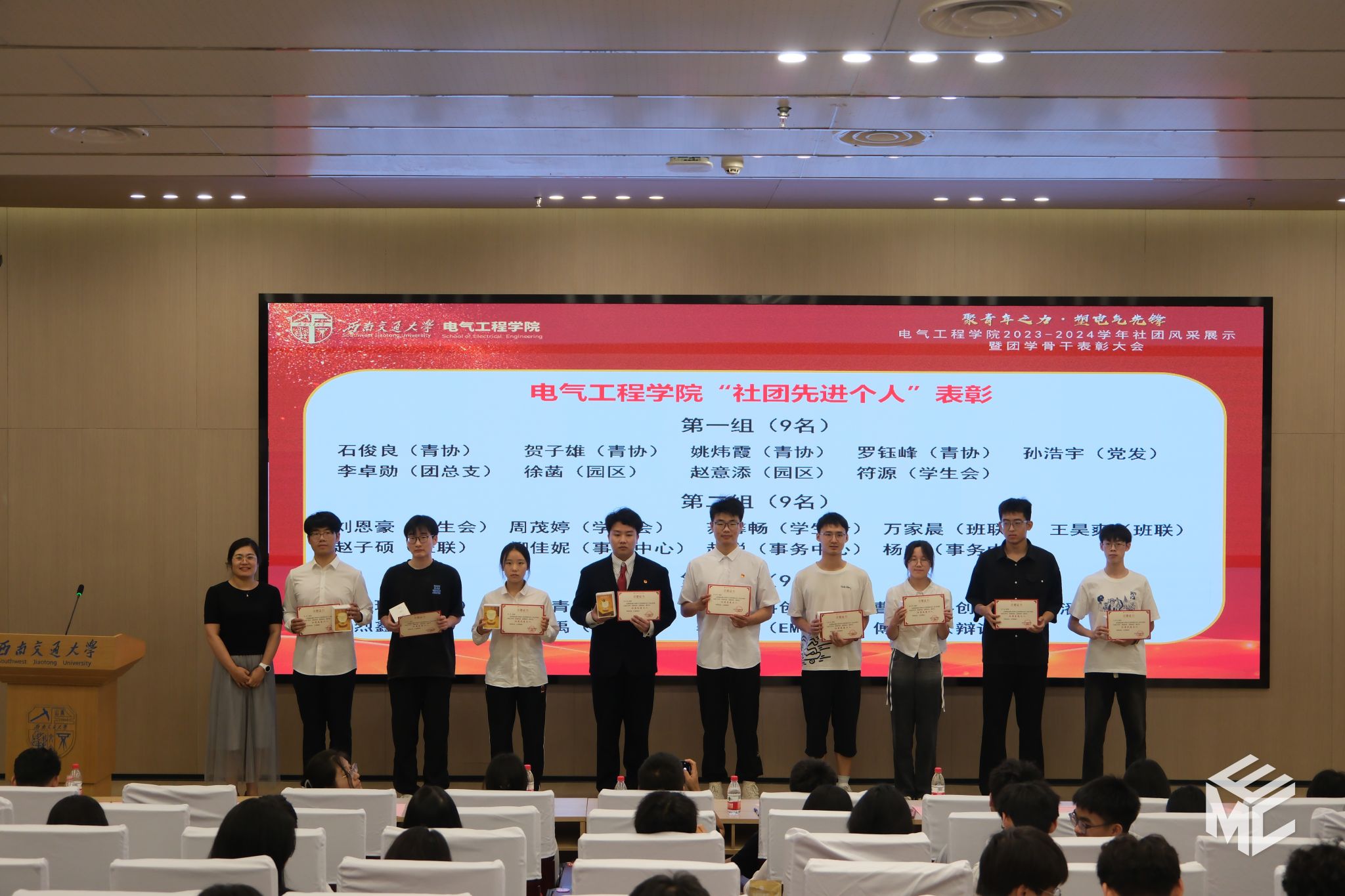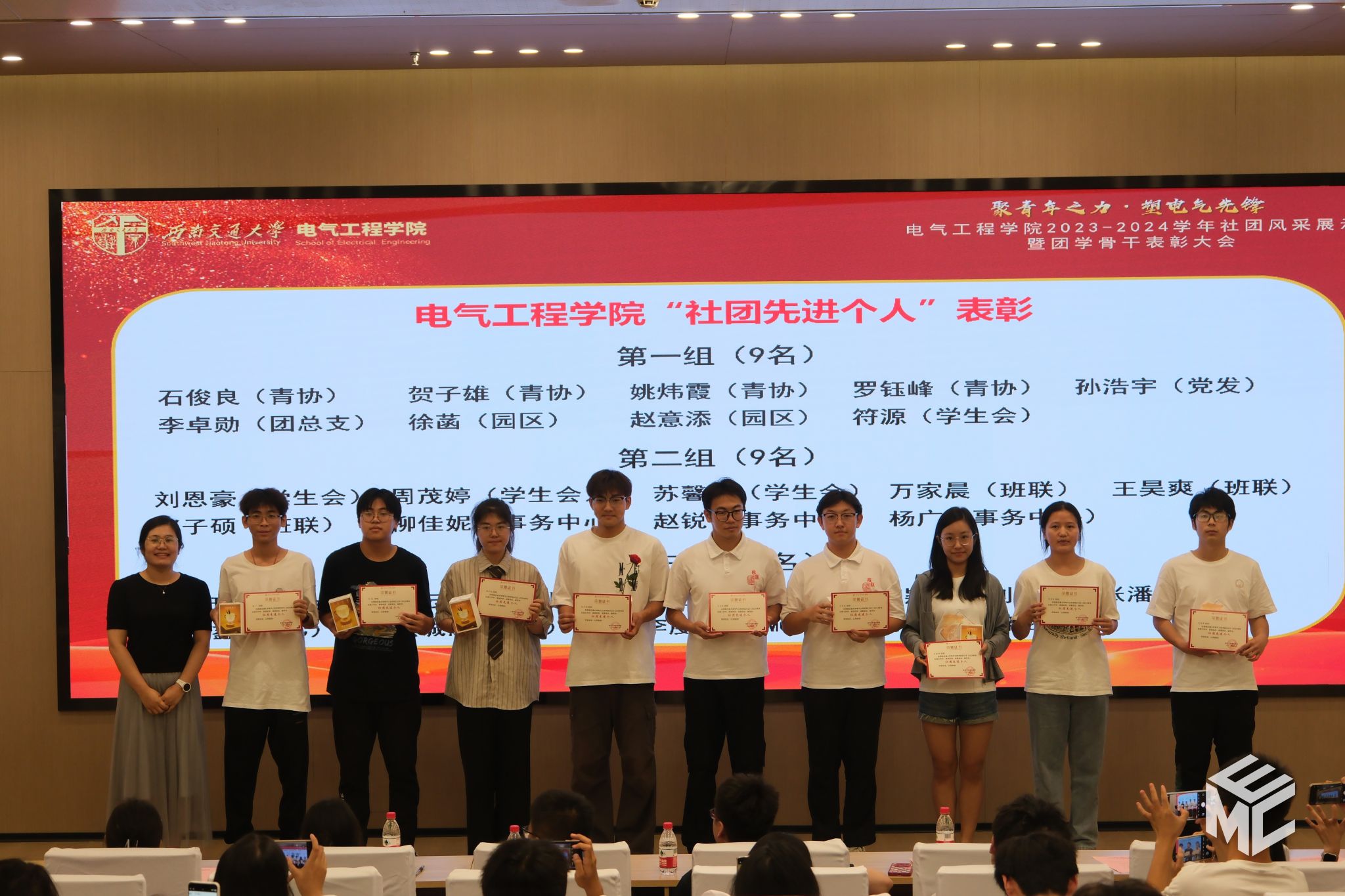 2024年6月14日19时,awc777万象城娱乐官网2023-2024学年“聚青年之力·塑电气先锋”社团风采展示暨团学骨干表彰大会于犀浦校区图书馆二号报告厅举办。学院团委书记张异老师,学院学生社团(组织)学生会、青年志愿者协会、媒体事务中心(EMC)、班级联合会(学业发展指导中心)、大学生科技活动中心、学生事务中心、研究生会、园区自我管理委员会、党员发展服务中心、辩论队、团总支共11个社团(组织)的指导老师及骨干成员们参加会议。
