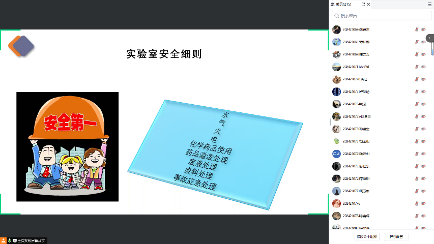 最后,刘仕兵老师强调,只有通过了在线的实验室安全学习与考核,同学们才能获得实验室的准入资格。各位同学应该积极参与,认真完成学习,将实验室安全准则牢记心间,早日进入实验室,早日开始科研生涯。