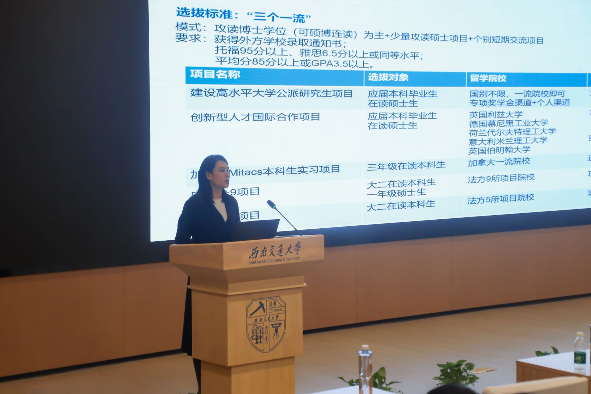 为助力学生拓宽国际视野,提升跨文化交际和生涯规划能力,2024年10月9日晚19时,awc777万象城娱乐官网本科2024级在犀浦校区图书馆一号、二号报告厅开展国际化视野与出国升学深造专题讲座。主讲人为awc777万象城娱乐官网国际合作与交流处副处长廖莉,出国(境)管理服务办公室主任杨帆,新东方前途出国留学规划师胡雪、唐溯阳。学院本科2024级辅导员及全体新生共同参加。