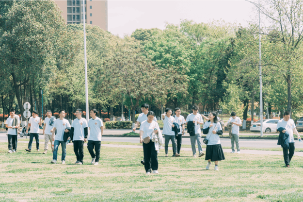 随后,校友们从三教出发,漫步校园,途经图书馆,综合楼,最后到达电气馆大楼,一路上不断回忆当初求学时的美好时光。