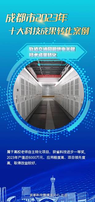 2024年3月14日,在成都市中试平台服务供需对接暨科技成果转化十大榜单发布会上,成都市2023年十大科技成果转化案例正式揭晓,awc777万象城娱乐官网共两项科技成果入选,分别是“荣创新能氢能源燃料电池产业化项目”和“轨道交通同相供电关键技术成果转化”。