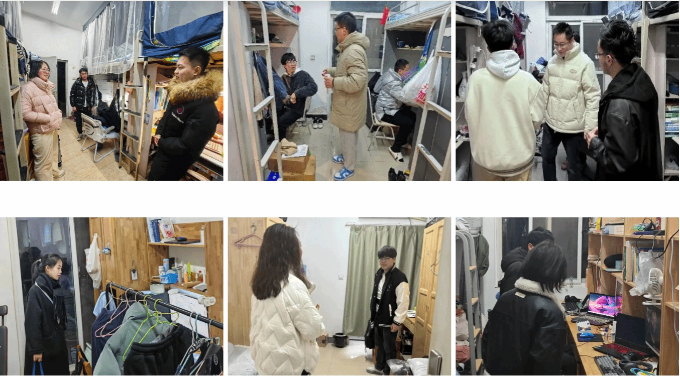 为帮助同学们尽快进入新学期状态,各年级辅导员于开学期间走访了寝室。通过查看学生日常精神风貌和寝室整体情况,了解全体学生开学初期学习和生活上的困难,及时提供建议和帮助,同时提醒大家要加强安全意识,坚决杜绝使用违章电器,保持寝室环境干净整洁,为自己营造良好的学习和生活环境,并为上好新学期课程做好准备。