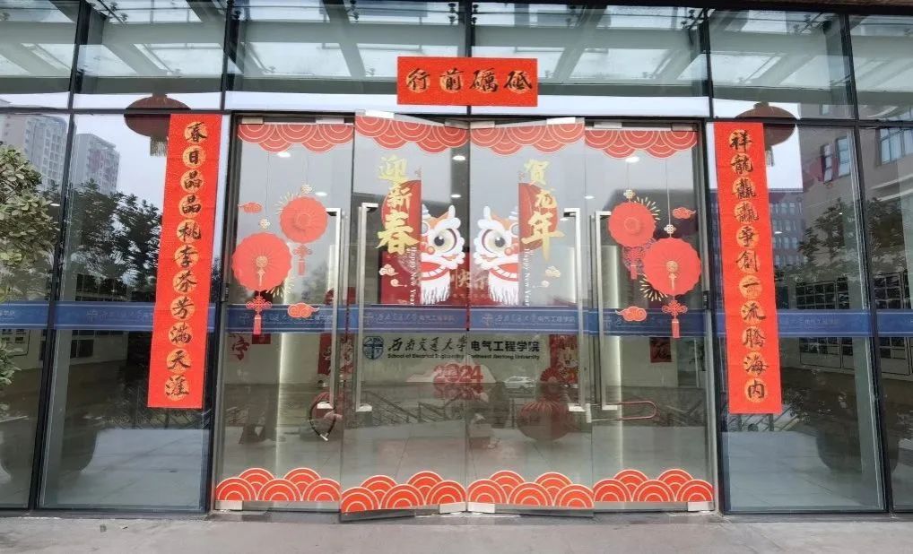 新年新气象,犀浦校区电气馆也在新春到来之际装扮一新。手写对联、红火灯笼、萌龙贴纸......学院用精心准备的装饰品营造温暖祥和的环境,以昂扬向上的姿态迎接龙年的到来。
