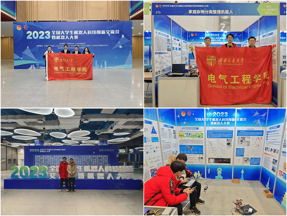 12月17日至12月19日,2023年全国大学生机器人科技创新交流营暨机器人大赛终审决赛在山东日照举行,电气学院时劭铭、刘雨桐、赵书磊、侯竟的作品“家庭杂物分类整理机器人”代表学校在全国1017件参赛作品中脱颖而出,斩获全国一等奖。