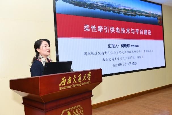 随后,中国铁设副总工程师、全国工程勘察设计大师蒋先国作题为“数字孪生牵引供电系统探索”的学术报告;俄罗斯工程院外籍院士、中心常务副主任陈维荣作题为“氢能零碳轨道交通发展现状与思考”的学术报告;中铁二院电化院总工程师邓云川作题为“川藏铁路牵引供电科研进展及其新藏铁路用能系统的思考”的学术报告;中心专职副主任、awc777万象城娱乐官网副院长何晓琼作题为“柔性牵引供电技术与平台建设”的学术报告。