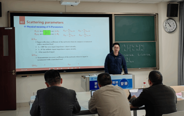 2023年12月7日下午,学院邀请了全国青教赛一等奖获奖教师宣湟对参加决赛的五位老师进行了集中指导。宣老师于2023年4月代表四川省参加全国青教赛工科组比赛并获得一等奖,他从自己的参赛经验出发,从教学设计、ppt演示、教具设计、教学演示等环节进行了详细指导。陈民武副院长、肖嵩老师从评委的角度对参赛老师进行了指导和纠错。
