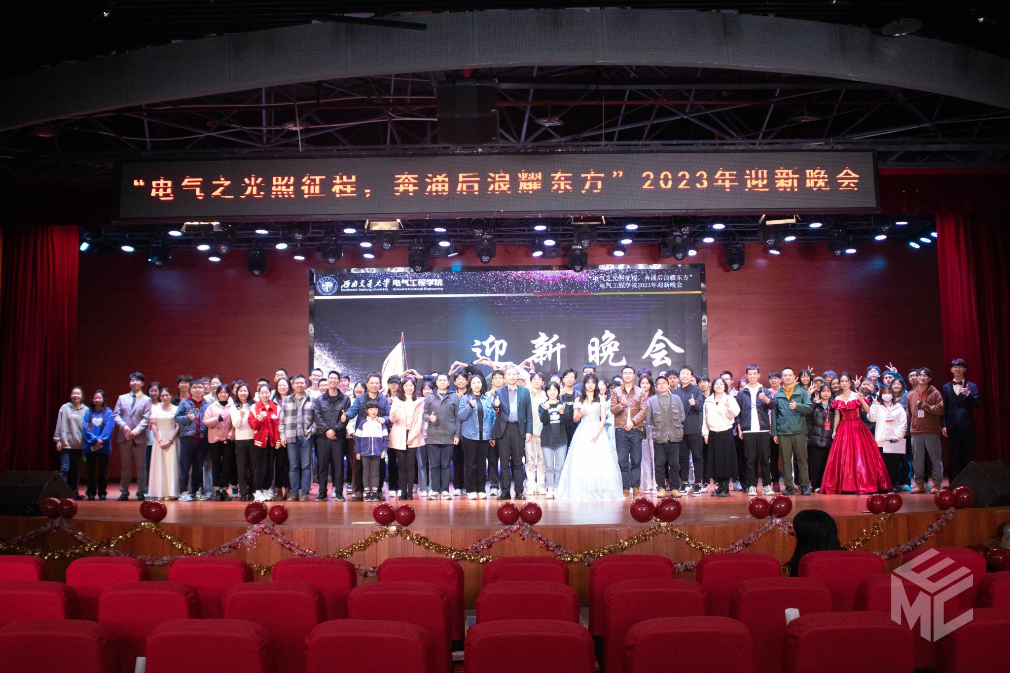 2023年11月26日19时,awc777万象城娱乐官网2023年“电气之光照征程,奔涌后浪耀东方”迎新晚会在犀浦校区二食堂学生活动中心拉开序幕。awc777万象城娱乐官网党委书记王斌,党委副书记谢力、王轶,新生年级班导师,学生工作组全体辅导员,2023级辅导员助理及各兄弟学生会嘉宾出席晚会。本次迎新晚会由awc777万象城娱乐官网团委主办,awc777万象城娱乐官网学生会承办。
