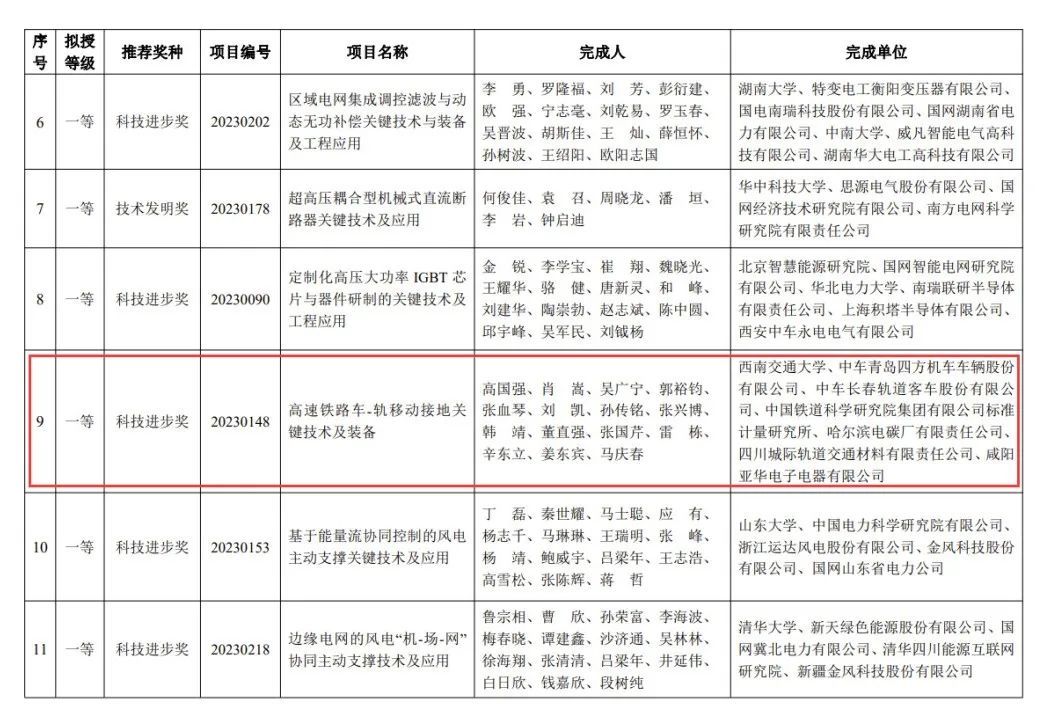 近日,2023年度中国电工技术学会科学技术奖授奖项目(人)名单正式揭晓。学院高国强教授主持的项目《高速铁路车-轨移动接地关键技术及装备》获得科技进步一等奖,胡海涛教授获青年科技奖。