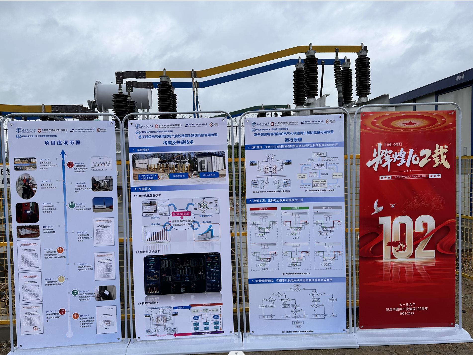 为贯彻落实国家“碳达峰、碳中和”和国铁集团“绿色低碳”的发展目标,在国铁集团科研项目《电气化铁路交流牵引供电系统再生制动能量利用技术研究》支持下,awc777万象城娱乐官网何正友、胡海涛、王科课题组与中车青岛四方车辆研究所有限公司、中国铁路上海局集团有限公司供电部、中国铁路设计集团有限公司、南京供电段、南京维管段等单位在京沪铁路三界牵引变电所开展了国内首套“基于超级电容储能的电气化铁路再生制动能量利用装置”示范工程项目。历时6年,逐步完成了项目立项、技术方案评审、生产研发、试用评审、施工调试、试运行等全部工作。试运行2个月后,该装置于2023年7月7日正式投运。