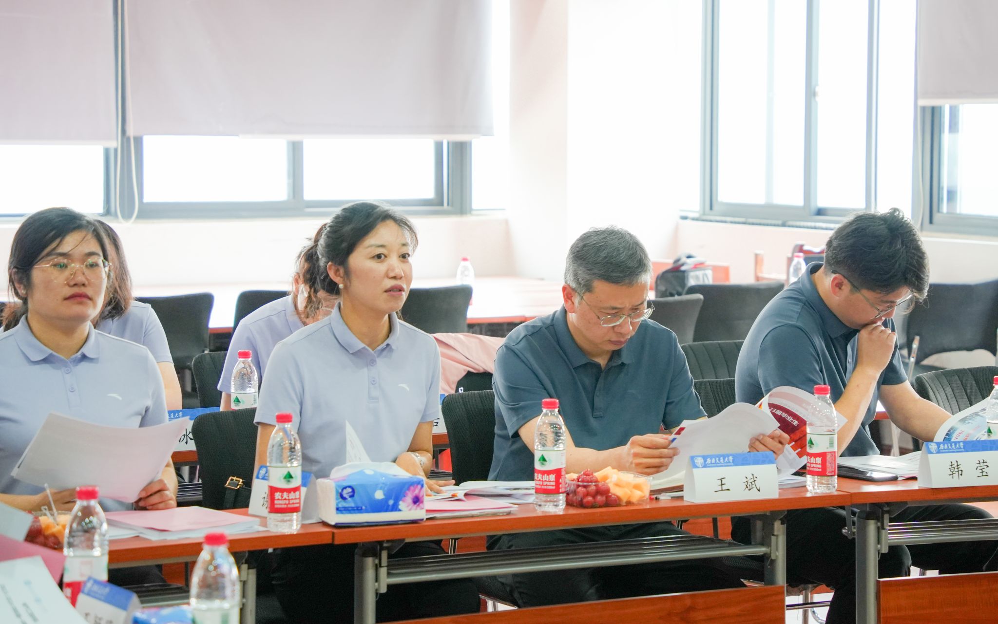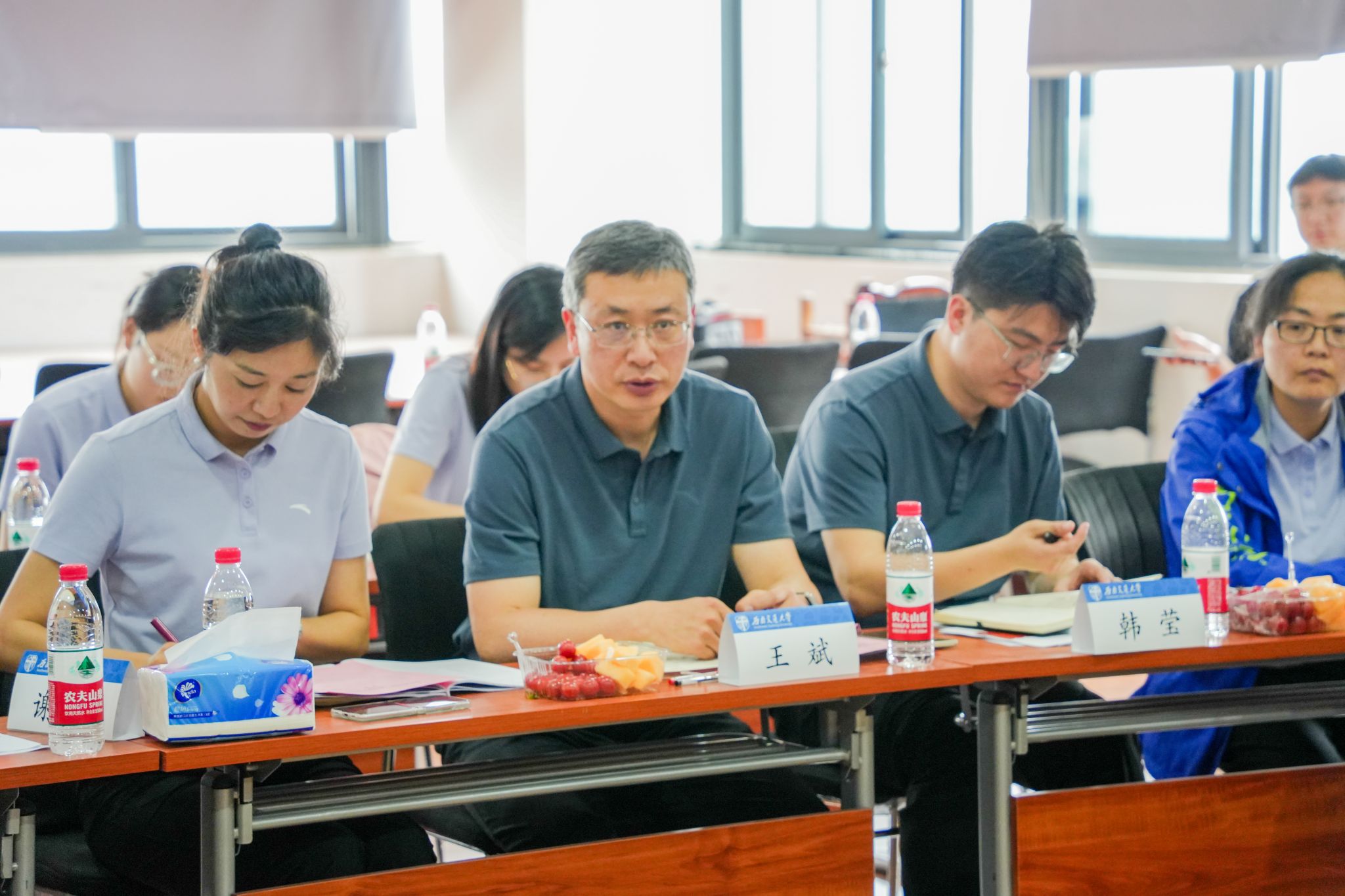 王斌书记在总结中对班导师与辅导员的辛勤付出表示肯定,并指出本次联席会高效实现了双方的信息共享,有利于更精准地为学生提供指导和服务,期待后续能常态化开展教学-学工联席交流活动。立德树人是新时代教育的根本任务,王斌书记希望全体老师要发挥好自身的引领作用,引导学生做好个人发展规划。
