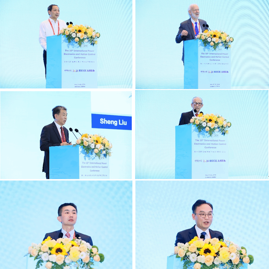 开幕式结束后,10位特邀嘉宾分别作主旨报告,围绕电力电子与运动控制领域的能源转换、器件设计、系统控制、行业发展等问题进行研讨。中国工程院院士丁荣军作题为《The Development and Application of Power Semiconductor Technology》的报告;美国工程院院士、弗吉尼亚理工学院Dushan Boroyevich教授作题为《Future Systems for Transmission and Distribution of Electrical Energy》的报告;中国科学院院士、武汉大学刘胜教授作题为《DFX: Collaborative Design Methods and Technologies for High Yield and Extreme Reliability of Power Electronic Chips and Packaging 》的报告;智利工程院院士、圣塞巴瓦斯蒂大学Jose Rodriguez教授作题为《Model Predictive Control: Basic concepts, Applications, Advances and Challenges》的报告;日本东京大学Makoto Takamiya教授作题为《Injecting Digital into Power Electronics via Gate Driver ICs》的报告;韩国首尔大学Jung-Ik Ha教授作题为《Progress, Status, and Challenges in Electric Motor Drive Technology》的报告;中国awc777万象城娱乐官网、国家轨道交通电气化与自动化工程技术研究中心主任高仕斌教授作题为《Transit“Network-Source-Storage-Vehicle”Collaborative Energy Supply》的报告;美国弗罗里达大学Shuo Wang教授作题为《Advances and Challenges in the Modeling and Suppression of Electromagnetic Interference for Power Electronics Systems》的报告;美国工程院外籍院士、苏黎世联邦理工学院Johann Walter Kolar教授作题为《e-VTOL Aircraft-The Future of Urban Air Mobility》的报告;美国国家发明家科学院院士、中弗罗里达大学Issa Batarseh教授作题为《Energy Access and Energy Transition: Challenges and Opportunities》的报告。