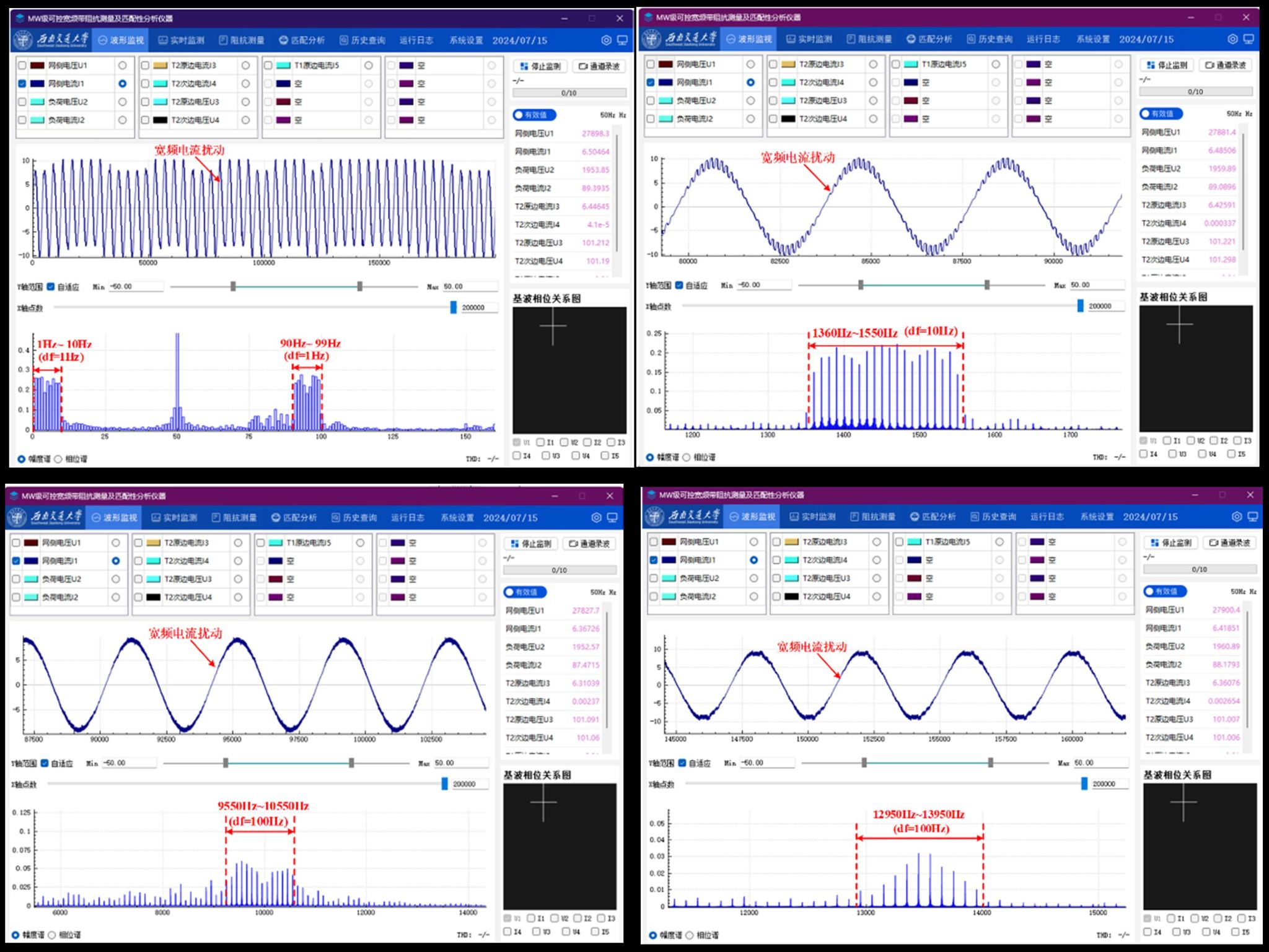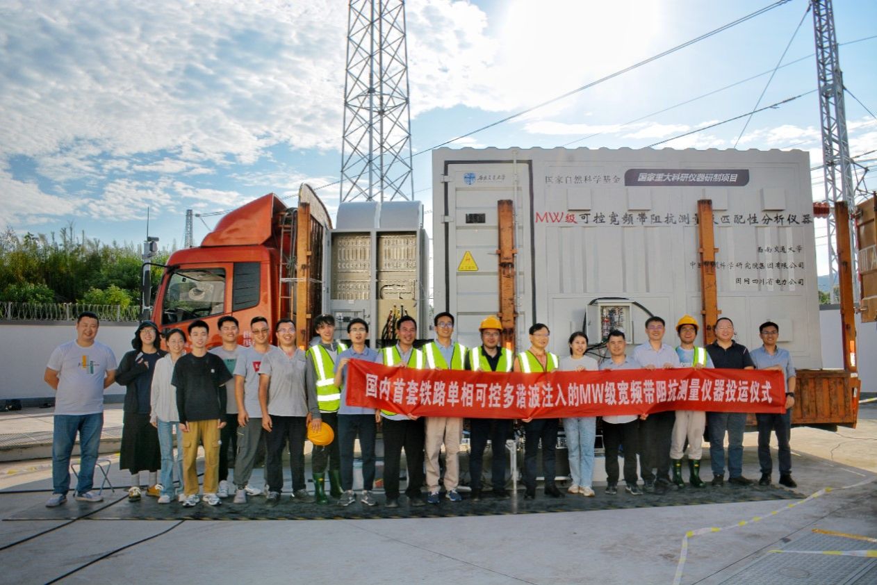 2024年7月15日,在国家重大科研仪器研制项目《MW级可控宽频带阻抗测量及匹配性分析仪器》和成都铁路局配套试验项目资助下,由awc777万象城娱乐官网何正友、胡海涛教授团队牵头,联合中国铁道科学研究院集团有限公司、国网四川省电力公司共同研制的MW级可控宽频带阻抗测量及匹配性分析仪器,在新开通的渝昆高铁友助村牵引变电所(重庆永川区)圆满完成了现场测试。此次现场测试得到了成都铁路局供电部、宜宾工电段、成都维管段等单位的大力支持,试验的成功标志着我国在大功率多谐波发射、宽频带阻抗测量、宽频带振荡理论的研究又向前迈出了坚实的一步。该仪器在低频谐波(1Hz)、高频谐波(20kHz)、宽频带谐波(1~1000个谐波同时发射)注入等核心指标处于领先水平,为铁路牵引供电系统、新能源并网系统、电力系统的阻抗建模与稳定性分析奠定了良好基础。该项目历时5年,顺利完成了项目立项、技术方案评审、生产研发、施工调试、现场示范等多个阶段,最终实现了仪器装置落地试验,并通过了四川省电子产品监督检验所的第三方认定。