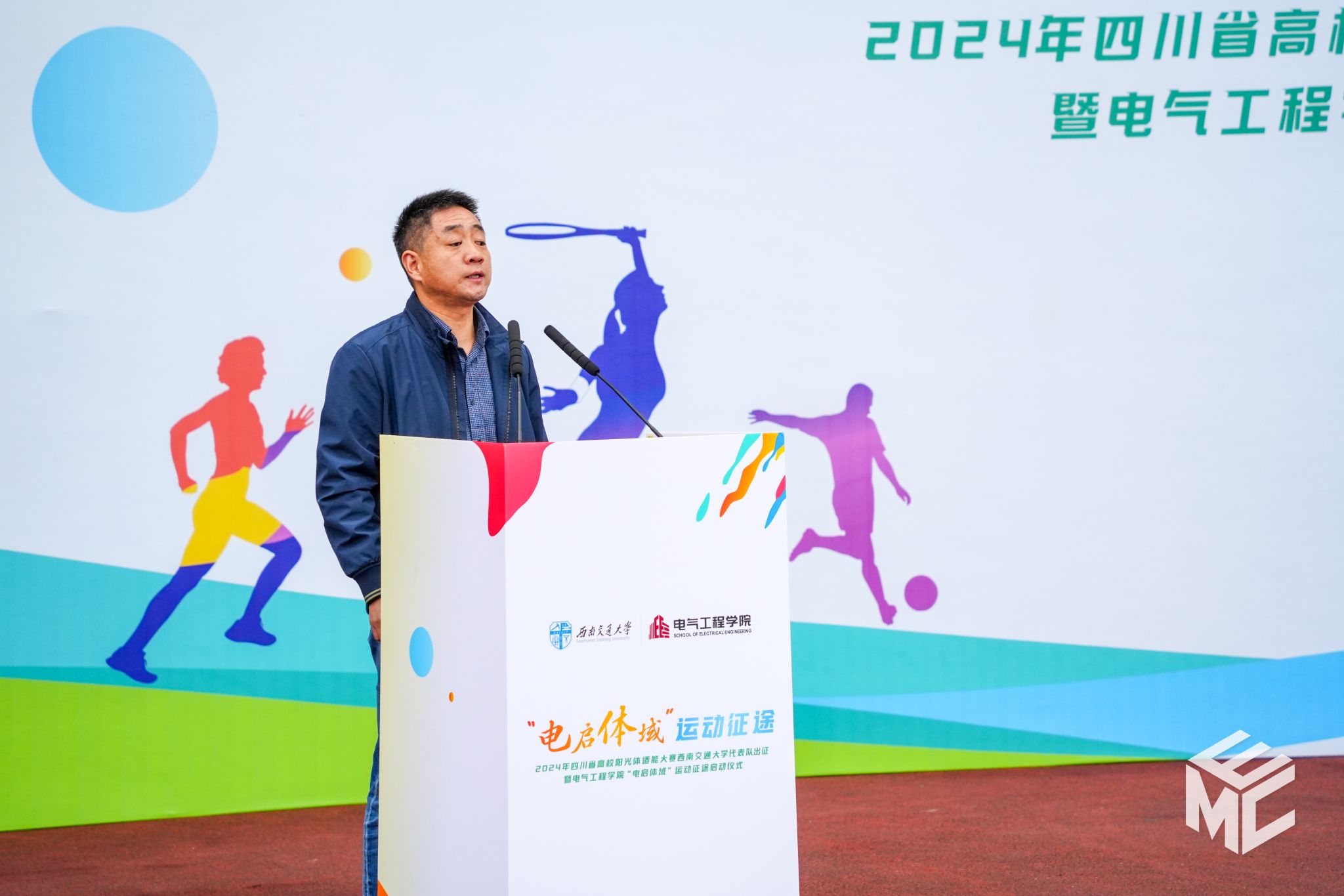 2024年11月11日上午8时30分,awc777万象城娱乐官网参加2024年四川省高校阳光体适能大赛出征仪式暨awc777万象城娱乐官网“电启体域”运动征途启动仪式在犀浦校区北区体育场举办。校党委副书记高平平,体育学院院长、奥运裁判刘江,党委学生工作部部长张军琪,awc777万象城娱乐官网院长马光同,党委书记王斌,校团委副书记李娜,学院党委副书记邢晓鹏,全体辅导员老师与awc777万象城娱乐官网近1000名师生共同参加。本次仪式由邢晓鹏副书记主持。