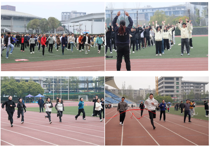 运动会正式开幕。全场师生在教练的带领下进行热身活动,活动筋骨、拉伸肌肉、释放活力。在随后的表演赛上,班导师和辅导员齐上阵,百米冲刺,赛出风采。老师们不仅在课堂上传道解惑,也在运动场上树立榜样。