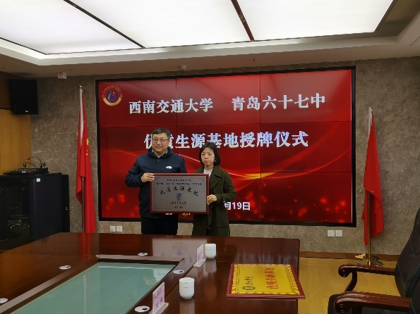 招生工作组代表awc777万象城娱乐官网分别与城阳二中、第六十七中学以及西海岸一中进行了优质生源基地授牌仪式,旨在加强高校与中学之间的联系,共同为学生搭建更为广阔的成长平台。