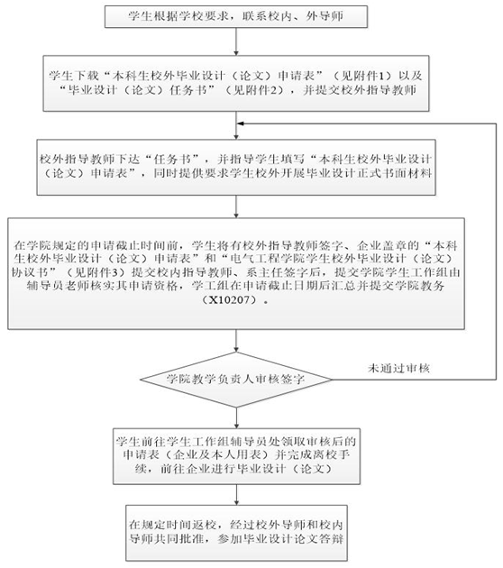 为了加强毕业设计(论文)选题及后期管理工作,规范我院本科生到校外进行毕业设计(论文)工作,保证毕业设计(论文)质量,经学院研究,决定对本科生申请进行校外毕业设计(论文)的审批做如下规定,请遵照执行。