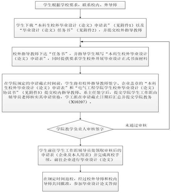 为了加强毕业设计(论文)选题及后期管理工作,规范我院本科生到校外进行毕业设计(论文)工作,保证毕业设计(论文)质量,经学院研究,决定对本科生申请进行校外毕业设计(论文)的审批做如下规定,请遵照执行。