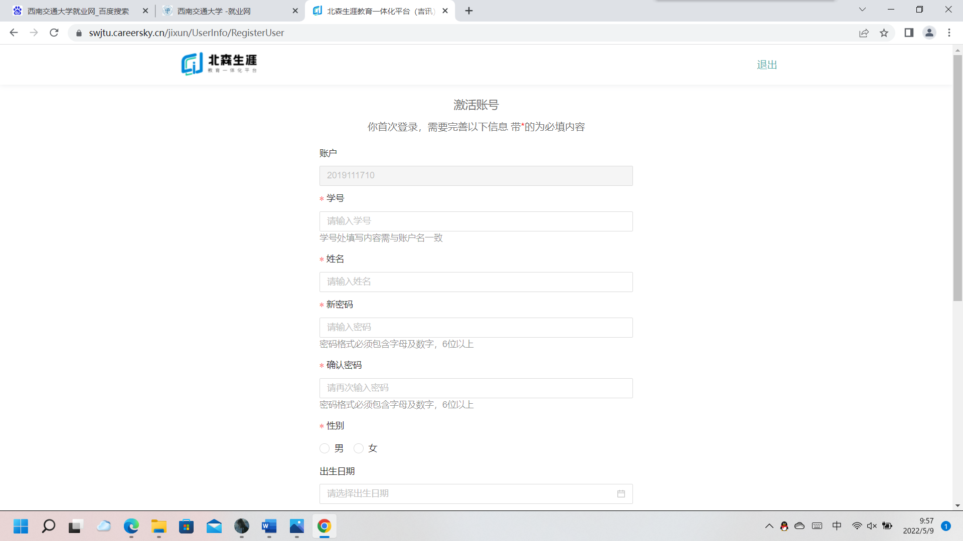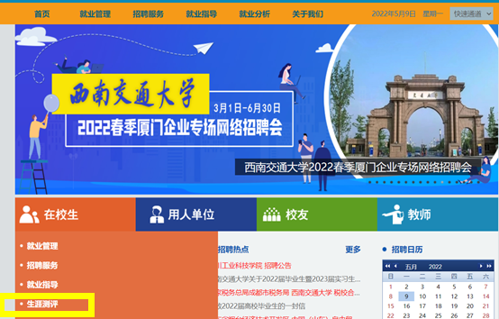 https://jiuye.swjtu.edu.cn/eweb/jygl/index.so)点击“在校生-生涯测评”模块: