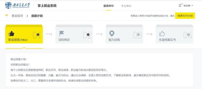 第三步:点击生涯档案,“加入我的计划”,开始自助计划:
