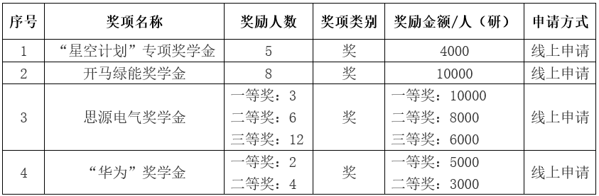 2020-2021学年学院专项奖助学金评选项目见下表,评定办法见附件3。