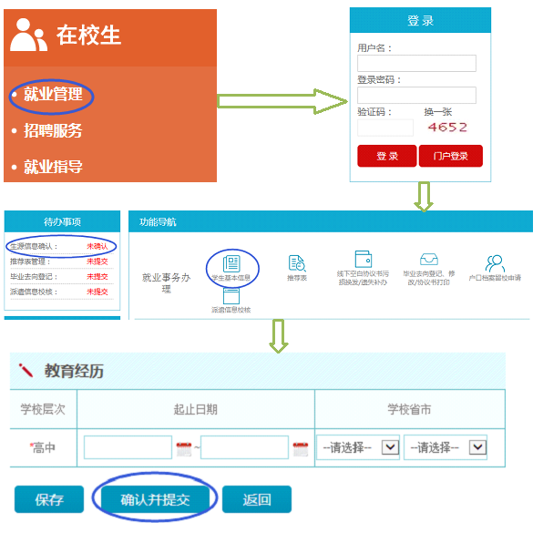 2.点击左侧栏生源信息确认,根据说明对相关项内容逐一核对或填写,最后务必点击页面下方“确认提交”,以提交学院老师审核。